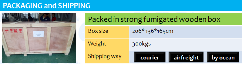 | Після сервісного обслуговування | Продавець надає інструмент та відео про те, як встановити, налаштувати та використовувати машину, як тільки машина готова. Продавець надає своєчасну послугу, коли у користувача є проблеми з використанням. Продавець може відправити одного інженера на фабрику покупця для встановлення та введення в експлуатацію та навчання, покупець повинен відповідати за кімнату та борт та проїзні квитки та візовий збір |