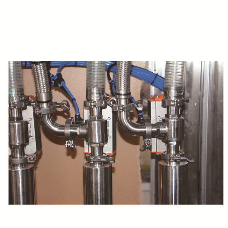 3. Він може задовольнити потребу в більшій потужності, якщо застосовувати подачу у пляшки з двома рейками, дворазову наповнення та загвинчування чи прокатку та пресування з двома насадками. Ця машина має високу точність наповнення, і її можна зручно розбирати та стерилізувати, використовуючи швидкий з'єднувальний насос з нержавіючої сталі. З використанням постійного накручування кришки крутного моменту та пневматичного протектора герметичний рот є герметичним.